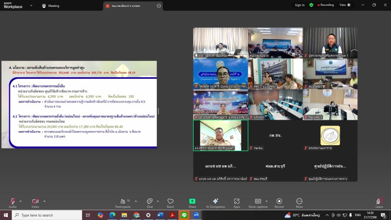วันที่ 21 กรกฎาคม 2568 เวลา 13.30 น. นายกรกฎ ชยุตรารัตน์ ผู้ตรวจราชการกรม เขตตรวจราชการที่ 1 10 และ 12 เข้าร่วมประชุมตรวจติดตามผลการดําเนินงานตามแผนการตรวจราชการ และการขับเคลื่อนการตรวจราชการในพื้นที่ของผู้ตรวจราชการกระทรวงเกษตรและสหกรณ์ ประจําปีงบประมาณ พ.ศ. 2568 รอบที่ 2 เขตตรวจราชการที่ 1 จังหวัดชัยนาท โดยการประชุมทางไกลผ่านสื่ออิเล็กทรอนิกส์ระบบออนไลน์ Web Conference Zoom Meeting