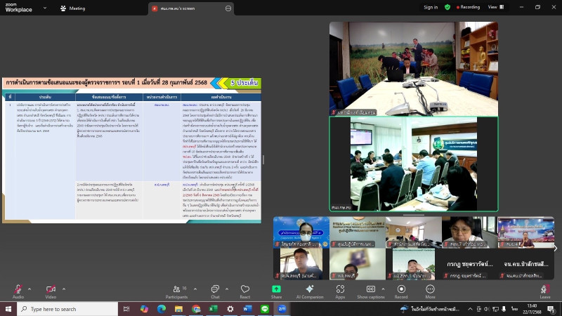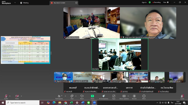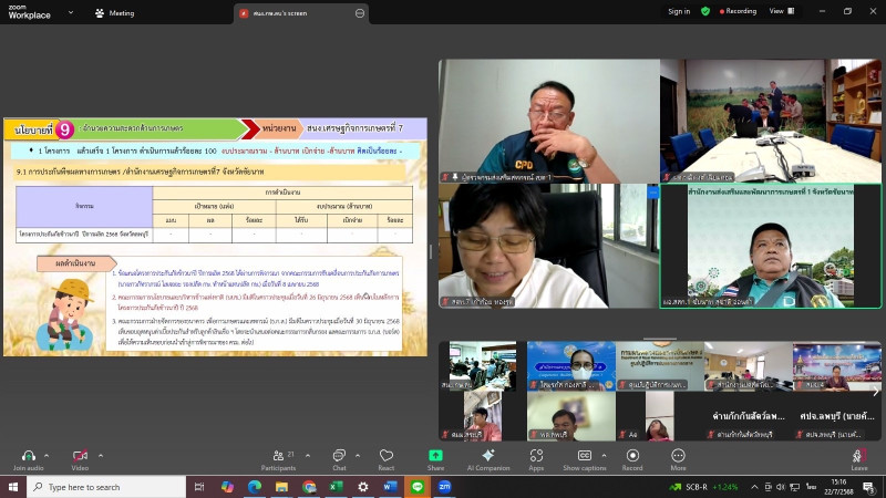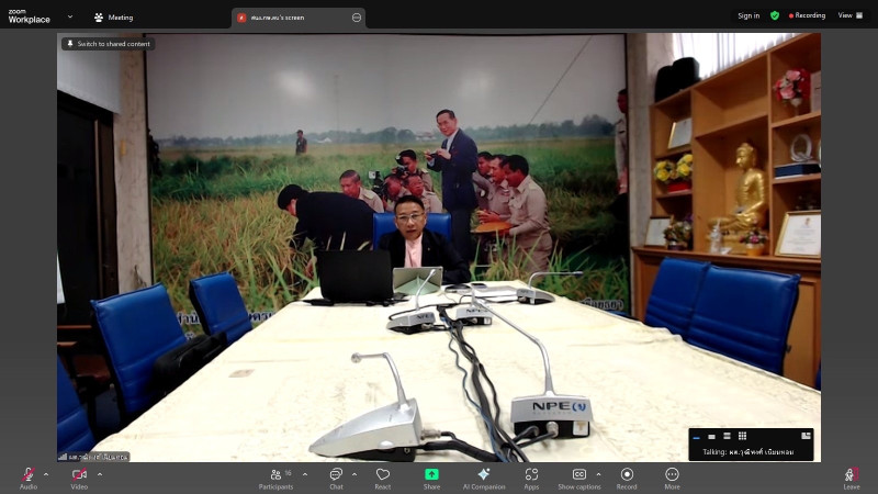 วันที่ 22 กรกฎาคม 2568 เวลา 13.30 น. นายกรกฎ ชยุตรารัตน์ ผู้ตรวจราชการกรม เขตตรวจราชการที่ 1 10 และ 12 เข้าร่วมประชุมตรวจติดตามผลการดําเนินงานตามแผนการตรวจราชการ และการขับเคลื่อนการตรวจราชการในพื้นที่ของผู้ตรวจราชการกระทรวงเกษตรและสหกรณ์ ประจำปีงบประมาณ พ.ศ. 2568 รอบที่ 2 เขตตรวจราชการที่ 1 จังหวัดลพบุรี โดยการประชุมทางไกลผ่านสื่ออิเล็กทรอนิกส์ระบบออนไลน์ Web Conference Zoom Meeting