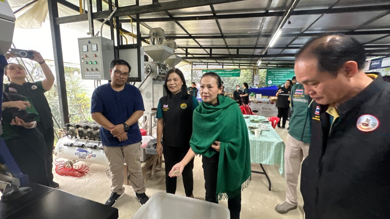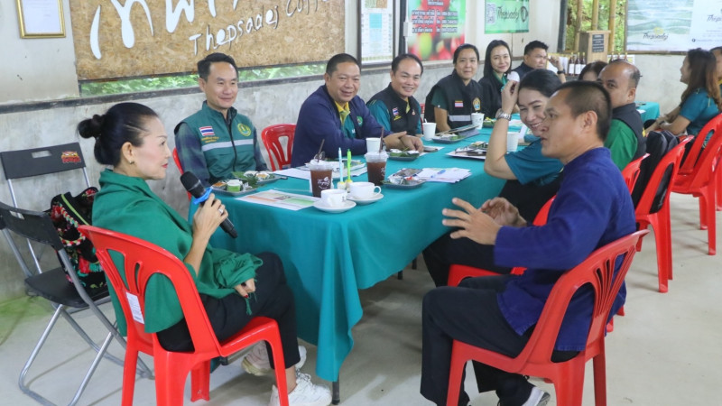 โดยมีนายสุวรรณ เทโวขัติ ประธานวิสาหกิจชุมชนกาแฟแม่ตอน รายงาน ผลการดำเนินงาน และสถานการณ์การผลิตสินค้ากาแฟ อำเภอดอยสะเก็ด ปี2568/69 ดังนี้ เนื้อที่การเพาะปลูกกาแฟยืนต้นจำนวน 9,626 ไร่ มีแปลงใหญ่กาแฟจำนวน 1 แปลง กลุ่มวิสาหกิจชุมชน จำนวน 13 กลุ่ม และได้รับมาตรฐาน GI จำนวน 29 ราย รวมถึงการนำเสนอผลการดำเนินงานของวิสาหกิจชุมชนแปลงใหญ่ผึ้งโพรงเทพเสด็จ ปัญหา และอุปสรรค และเสนอแนวทางการพัฒนาผลิตภัณฑ์เพื่อเพิ่มมูลค่าสูง ต่อผู้ตรวจราชการกระทรวงเกษตรและสหกรณ์ เขตตรวจราชการที่ 15 ในการนี้ผู้ตรวจราชการกระทรวงเกษตรและสหกรณ์ ได้ให้คำแนะนำ ในการทำกาแฟคุณภาพเพื่อรักษามาตรฐาน ให้เพิ่มมูลค่ากาแฟเทะเสด็จให้เป็นสินค้าอัตลักษณ์ของชุมชนเทพเสด็จ รวมถึงการสร้างมาตรฐานสินค้าเกษตรให้เป็นที่ยอมรับของตลาดทั้งในและต่างประเทศ ให้หน่วยงานของกระทรวงเกษตรและสหกรณ์ บูรณาการการร่วมกันในการส่งเสริมพัฒนาสินค้าเกษตรในพื้นที่ เพื่อให้เกษตรกรได้ต่อยอดสร้างรายได้ และมีความเป็นอยู่ที่ดีขึ้นอย่างยั่งยืน