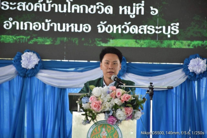 โดยมี นายบัญชา เชาวรินทร์ ผู้ว่าราชการจังหวัดสระบุรี นายกรกฎ ชยุตรารัตน์ ผู้ตรวจราชการกรม เขตตรวจราชการที่ 1 10 และ 12 นายสหนณ ชัยจรินันท์ สหกรณ์จังหวัดสระบุรี คณะผู้บริหารหน่วยงานสังกัดกระทรวงเกษตรและสหกรณ์ ข้าราชการ และเจ้าหน้าที่หน่วยงานที่เกี่ยวข้อง ร่วมให้การต้อนรับ ณ โดมเอนกประสงค์บ้านโคกขวิด หมู่ที่ 6 ตำบลตลาดน้อย อำเภอบ้านหมอ จังหวัดสระบุรี