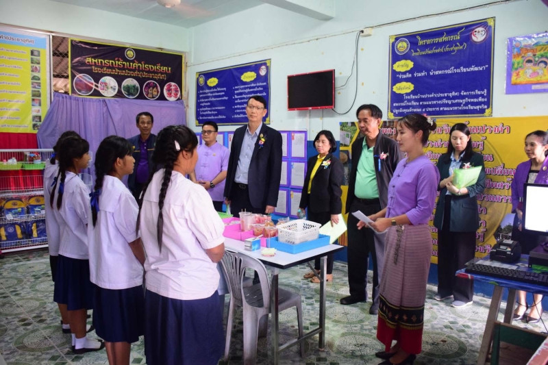 คณะกรรมการได้รับฟังการบรรยายสรุปผลการดำเนินงานสหกรณ์จากครูที่ปรึกษาและนักเรียน พร้อมเยี่ยมชมนิทรรศการและกิจกรรมการเรียนรู้กว่า 12 ฐาน อาทิ การแสดงวงดนตรี “ปวงคำแบรนด์” การเล่านิทานสหกรณ์โดยนักเรียนอนุบาล และการเรียนรู้ผ้าทอจกโหลงลี้