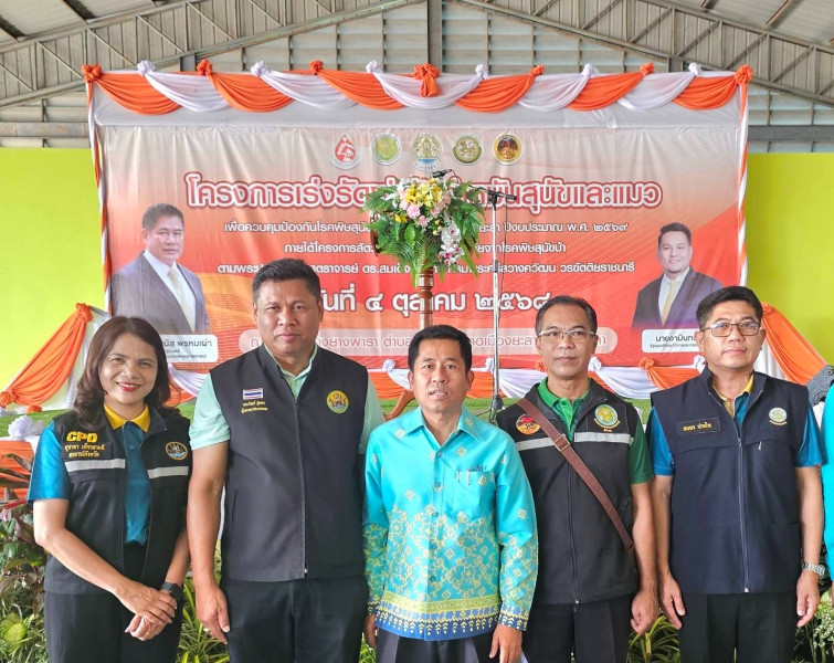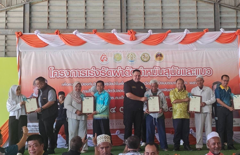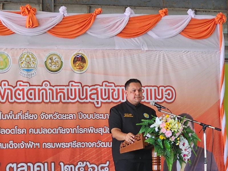 วันที่ 4 ตุลาคม 2568 นายอามินทร์ มะยูโซ๊ะ รัฐมนตรีช่วยว่าการกระทรวงเกษตรและสหกรณ์ ลงพื้นที่จังหวัดยะลา ในการเป็นประธานพิธีเปิดโครงการเร่งรัดผ่าตัดทำหมันสุนัขและแมว โดยมีนายธนะวิทย์ ชูทอง ผู้ตรวจราชการกรม เขตตรวจราชการที่ 6 และ 7 พร้อมด้วยคณะเจ้าหน้าที่ เข้าร่วม ณ สำนักงานตลาดกลางยางพารา จังหวัดยะลา การจัดโครงการฯ ในครั้งนี้เพื่อควบคุมโรคพิษสุนัขบ้า ตามพระปณิธานศาสตราจารย์ ดร. สมเด็จเจ้าฟ้าฯ กรมพระศรีสวางควัฒน วรขัตติยราชนารี และเพื่อควบคุมป้องกันโรคพิษสุนัขบ้าในพื้นที่เสี่ยง จังหวัดยะลา