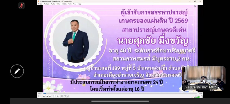 สำหรับการประชุมนี้ได้พิจารณาคัดเลือกบุคคลที่สมควรได้รับการแต่งตั้งเพื่อเชิดชูเกียรติเป็นปราชญ์เกษตรของแผ่นดินปี 2569 ในระดับเขต 14 (ยโสธร ศรีสะเกษ อำนาจเจริญ อุบลราชธานี) จำนวน 3 สาขา ดังนี้ 1.ปราชญ์เกษตรเศรษฐกิจพอเพียง 2.ปราชญ์เกษตรดีเด่น 3.ปราชญ์เกษตรผู้นำชุมชนและเครือข่าย เพื่อนำเสนอต่อคณะอนุกรรมการสรรหาปราชญ์เกษตรของแผ่นดิน ดำเนินการตามกระบวนสรรหาที่กำหนดไว้ต่อไป
