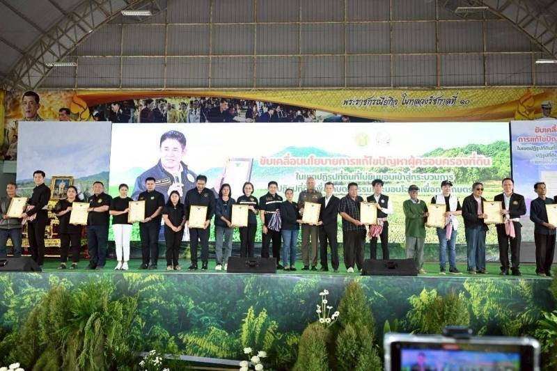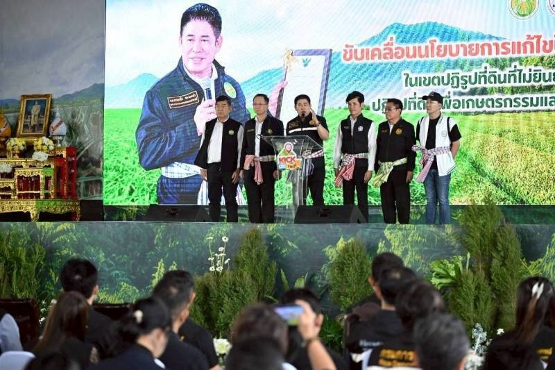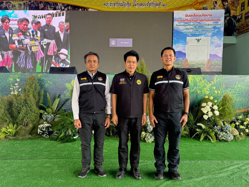 วันที่ 21 พฤศจิกายน 2568 ร้อยเอก ธรรมนัส พรหมเผ่า รองนายกรัฐมนตรีและรัฐมนตรีว่าการกระทรวงเกษตรและสหกรณ์ เป็นประธานในพิธีน้อมรำลึกในพระมหากรุณาธิคุณ และถวายอาลัยสมเด็จพระนางเจ้าสิริกิติ์ พระบรมราชินีนาถ พระบรมราชชนนีพันปีหลวง ร่วมยืนสงบนิ่ง รับชมวิดีทัศน์การดำเนินงานการแก้ไขปัญหาผู้ครอบครองที่ดินในเขตปฏิรูปที่ดินที่ไม่ยินยอมเข้าสู่กระบวนการปฏิรูปที่ดิน พบปะและรับฟังปัญหาของเกษตรกร มอบโฉนดเพื่อการเกษตร เงินอุดหนุน ปัจจัยการผลิต มอบทุนให้แก่เกษตรกรกลุ่มเปราะบาง และเยี่ยมชมนิทรรศการ โดยมีนายสมศักดิ์ กรีธาธร หัวหน้าผู้ตรวจราชการกรม นายเฉลิม นวมนิ่ม สหกรณ์จังหวัดราชบุรี คณะผู้บริหารในสังกัดกระทรวงเกษตรและสหกรณ์ เจ้าหน้าที่ผู้เกี่ยวข้อง ให้การต้อนรับ ณ สำนักงานเทศบาลด่านทับตะโก อำเภอจอมบึง จังหวัดราชบุรี