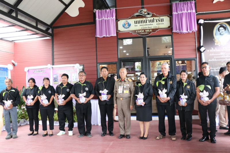 ในการนี้ องคมนตรี รับฟังการบรรยายสรุปผลการดำเนินงาน ปัญหา อุปสรรค เยี่ยมชมผลิตภัณฑ์โครงการฯ ภายในร้านนมหน้าฟาร์ม มอบพันธุ์ไม้ให้แก่ตัวแทนเกษตรกร โดยมีนายสมศักดิ์ กรีธาธร หัวหน้าผู้ตรวจราชการกรม เขต 3,4 นายประยูร พะมะ สหกรณ์จังหวัดประจวบคีรีขันธ์ ผู้บริหารในสังกัดกระทรวงเกษตรและสหกรณ์ สหกรณ์จังหวัดในเขตตรวจราชการที่ 3,4 และเจ้าหน้าที่ผู้เกี่ยวข้อง ให้การต้อนรับ