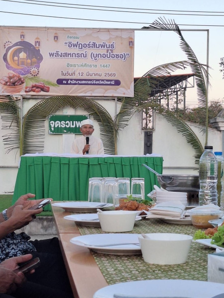 วันที่ 12 มีนาคม 2569 นายธนะวิทย์ ชูทอง ผู้ตรวจราชการกรม เขตตรวจราชการที่ 6 และ 7 เข้าร่วม "กิจกรรมอิฟฏอร์สัมพันธ์ ชาวสหกรณ์ (บูกอปอซอ)" ประจำปี ฮิจเราะห์ศักราช 1447 เพื่อเป็นการส่งเสริมการปฎิบัติศาสนกิจ เสริมสร้างความสามัคคี ความสัมพันธ์อันดี และตระหนักถึงคุณค่าของเดือนรอมฎอนอันประเสริฐ ณ สำนักงานสหกรณ์จังหวัดปัตตานี