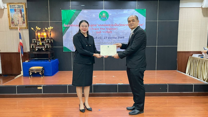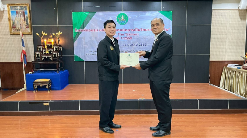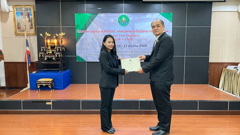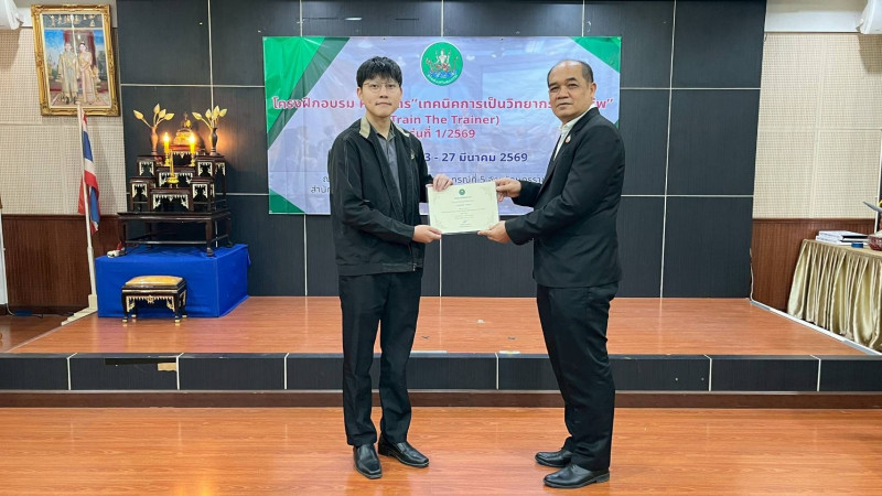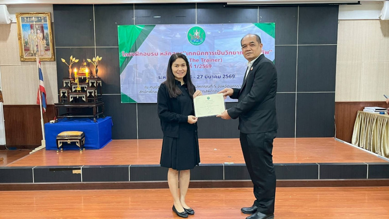 วันที่ 27 มีนาคม 2569 นายณัฐพล แป้นนอก ผู้ตรวจราชการกรม เขตตรวจราชการที่ 9 11 และ 13 เป็นประธานในพิธีปิดโครงการฝึกอบรม หลักสูตร "เทคนิคการเป็นวิทยากรมืออาชีพ (Train The Trainer)" รุ่นที่ 1/2569 และมอบประกาศนียบัตรแก่ผู้ผ่านการอบรม โดยมี นายปริญญา เศวตธรรม ผู้อำนวยการศูนย์ถ่ายทอดเทคโนโลยีการสหกรณ์ที่ 5 นายชายชาญ อาภาพล ผู้อำนวยการศูนย์ถ่ายทอดเทคโนโลยีการสหกรณ์ที่ 6 นายรณรงค์ ยี่หวา ผู้อำนวยการกลุ่มพัฒนาบุคลากร พร้อมด้วยผู้เข้ารับการอบรม เข้าร่วมพิธีปิด ณ ศูนย์ถ่ายทอดเทคโนโลยีการสหกรณ์ที่ 5 อำเภอเมือง จังหวัดนครราชสีมา